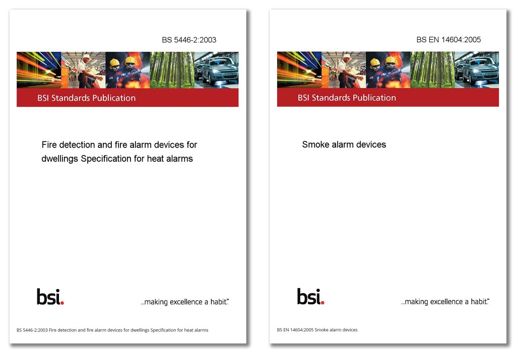 All smoke detectors must be in accordance with BS EN14604:2005 and all heat detectors must be in accordance with BS 5446-2:2003. Make sure you check the packaging before buying alarms to ensure they comply with the relevant British Standards.
